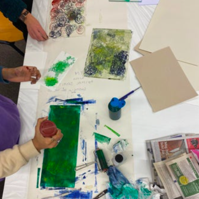 One of the techniques we used was monotyping. This is a printing technique I am quite familiar with and has a factor of surprise to it since you will never know exactly how the print will look. This creates freedom and motivates the participants to let go of trying to control the outcome too much.